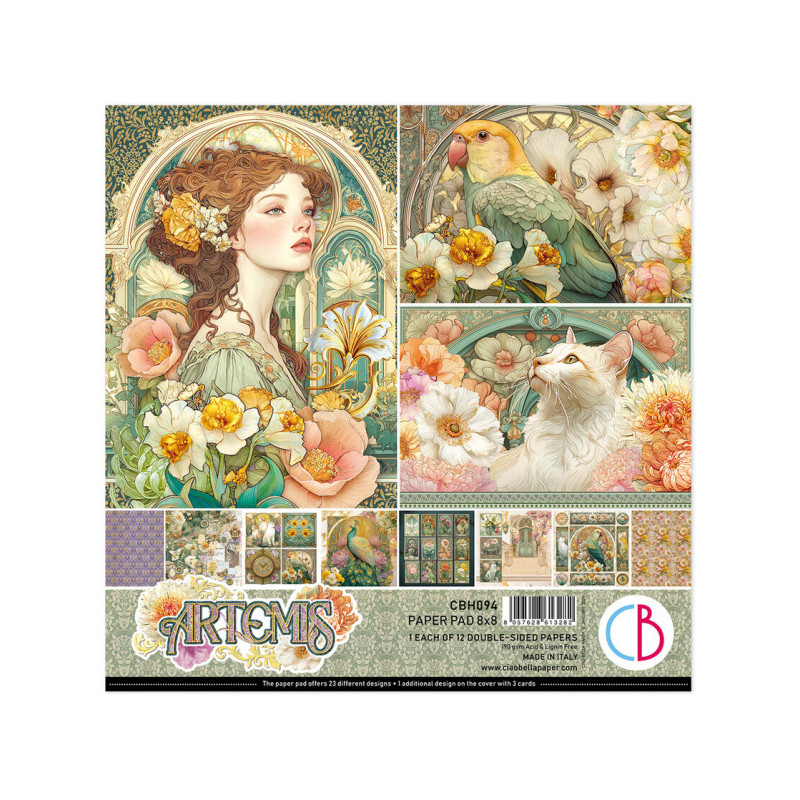 Sada designových papírů značky CIAO BELLA. Rozměr 20,3x20,3cm. Obsahuje 12 oboustranně potištěných papírů. Navíc bonus ve formě kartičkami potištěného titulního listu. Gramáž papíru cca 190g/m2. Acid&lignin free. Nevhodné pro děti do 3 let.