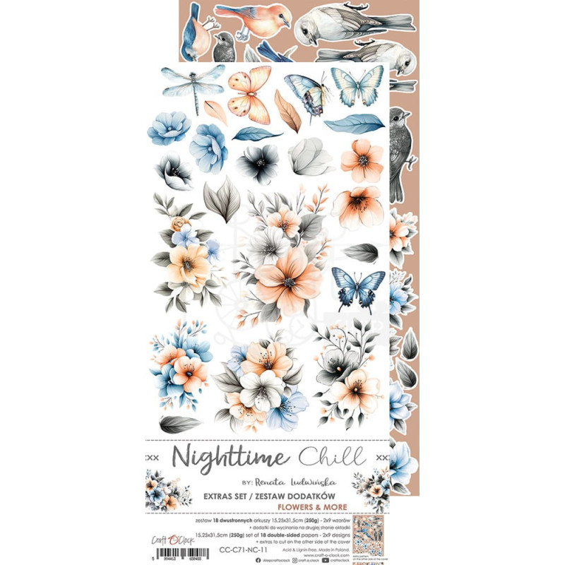 Sada 18 oboustranně potištěných papírů zn. Craft O'Clock o rozměru 15,25x31,5cm. 2x9 různých designů + bonusy ve formě potištěné rubové strany obálky. Gramáž papírů 250g/m2. Acid&lignin free. Nevhodné pro děti do 3 let.