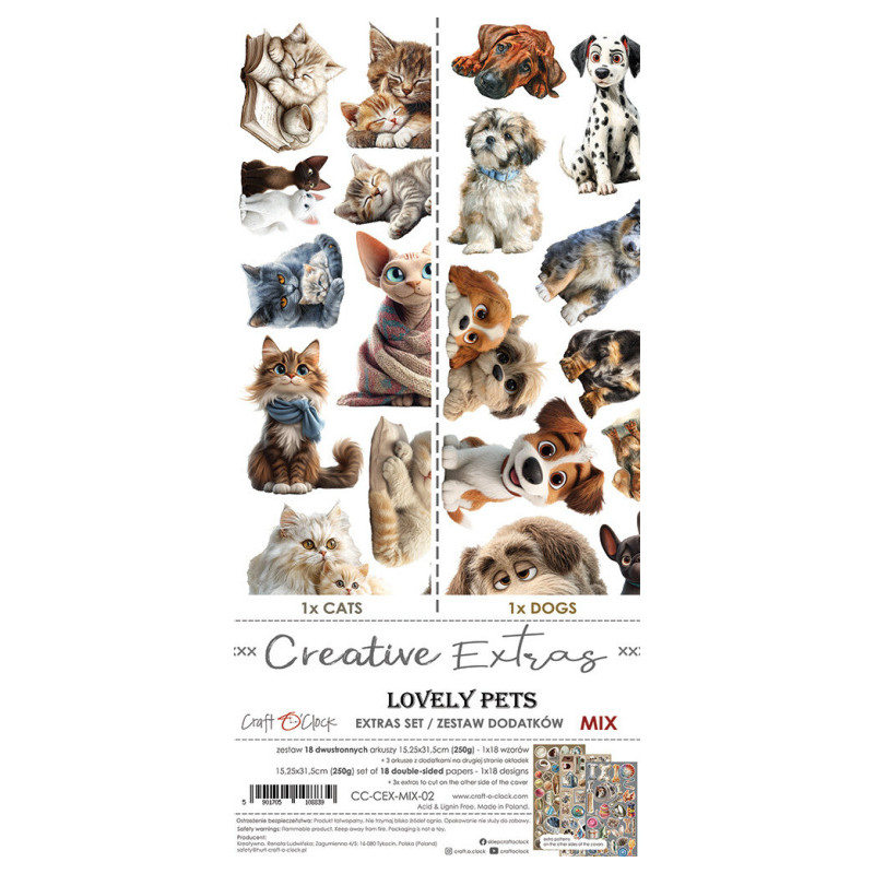 Sada 18 oboustranně potištěných papírů zn. Craft O'Clock o rozměru 15,25x31,5cm. 2x9 různých designů + bonusy ve formě potištěné rubové strany obálky. Gramáž papírů 250g/m2. Acid&lignin free. Nevhodné pro děti do 3 let.