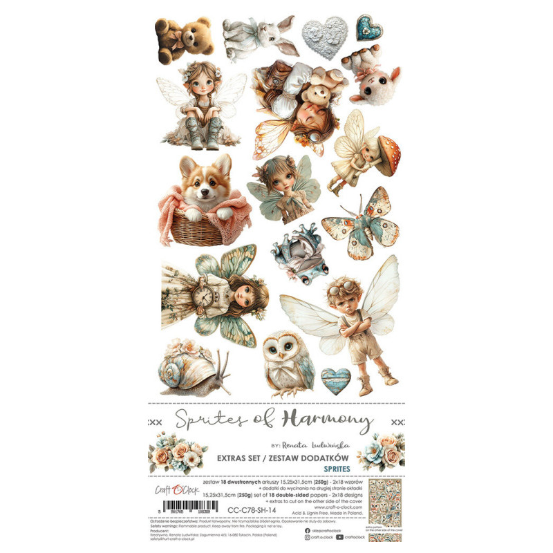 Sada 18 oboustranně potištěných papírů zn. Craft O'Clock o rozměru 15,25x31,5cm. 2x9 různých designů + bonusy ve formě potištěné rubové strany obálky. Gramáž papírů 250g/m2. Acid&lignin free. Nevhodné pro děti do 3 let.