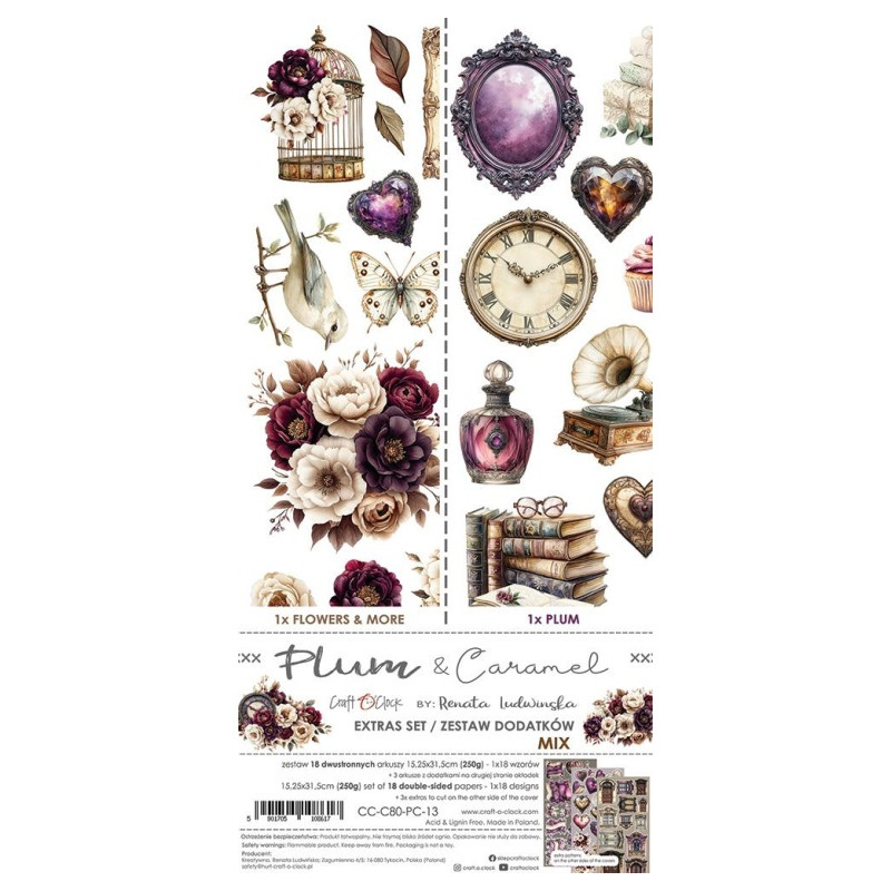 Sada 18 oboustranně potištěných papírů zn. Craft O'Clock o rozměru 15,25x31,5cm. 2x9 různých designů + bonusy ve formě potištěné rubové strany obálky. Gramáž papírů 250g/m2. Acid&lignin free. Nevhodné pro děti do 3 let.