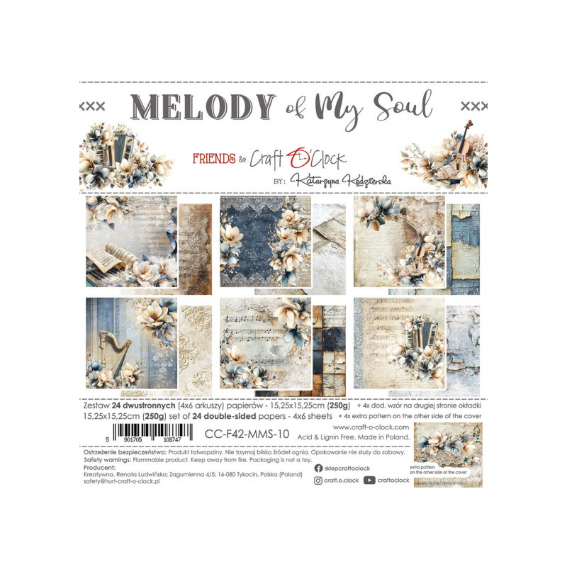 Sada papírů zn. Craft O´Clock o rozměru 15,2x15,2cm. Obsahuje 24ks oboustranně potištěných listů, vždy 4 se stejným motivem + bonus. Gramáž papírů 250g/m2, acid free. Nevhodné pro děti do 3 let.