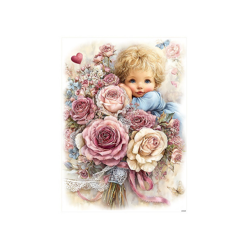 Přírodní rýžový, velmi jemný papír pro decoupage ve formátu A5. Velikost motivu cca 19,5x13,8cm. Gramáž 25-35gsm. Snadné lepení, vhodné na dřevo, lepenku, kov, sklo. Nevyžaduje před použitím namáčení. Nevhodné pro děti do tří let.
