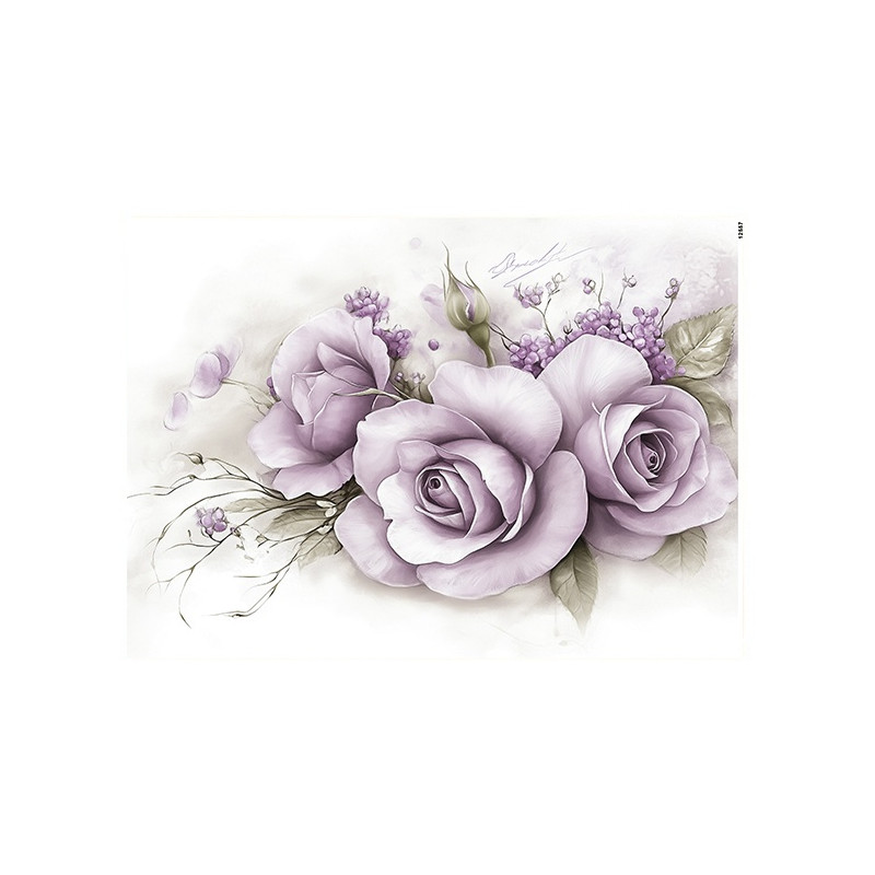 Přírodní rýžový, velmi jemný papír pro decoupage ve formátu A5. Velikost motivu cca 19,5x13,8cm. Gramáž 25-35gsm. Snadné lepení, vhodné na dřevo, lepenku, kov, sklo. Nevyžaduje před použitím namáčení. Nevhodné pro děti do tří let.