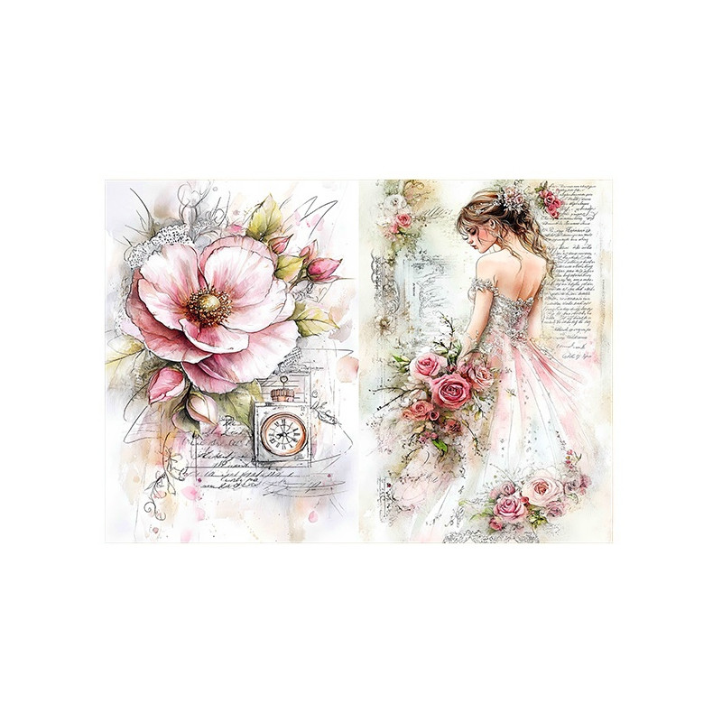Přírodní rýžový, velmi jemný papír pro decoupage ve formátu A5. Velikost motivu cca 19,5x13,8cm. Gramáž 25-35gsm. Snadné lepení, vhodné na dřevo, lepenku, kov, sklo. Nevyžaduje před použitím namáčení. Nevhodné pro děti do tří let.