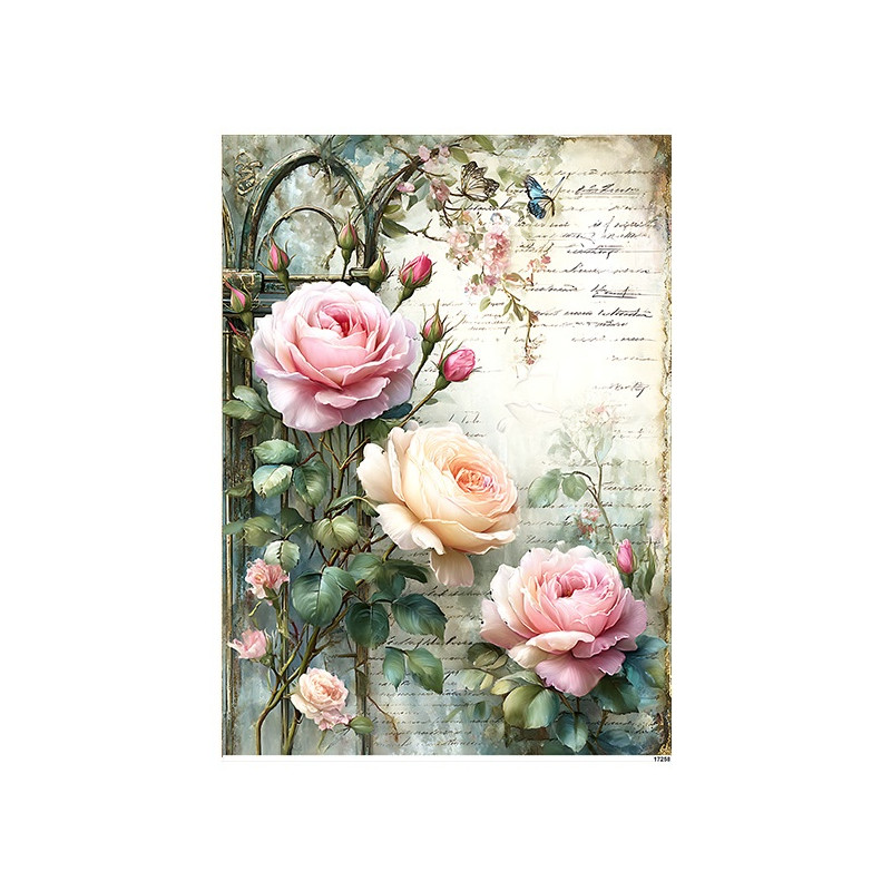 Přírodní rýžový, velmi jemný papír pro decoupage ve formátu A5. Velikost motivu cca 19,5x13,8cm. Gramáž 25-35gsm. Snadné lepení, vhodné na dřevo, lepenku, kov, sklo. Nevyžaduje před použitím namáčení. Nevhodné pro děti do tří let.
