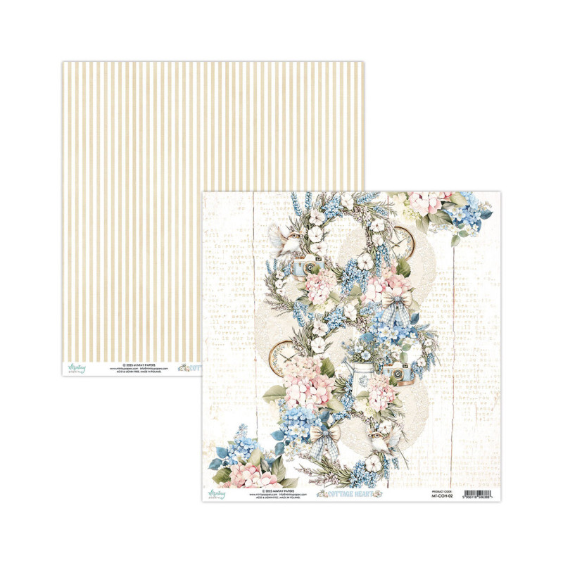Sada papírů o rozměru 20,3x20,3cm. Obsahuje 24 oboustranně vzorkovaných listů. 4x12 designů. Navíc bonus ve formě potištěné zadní strany titulního listu. Neobsahuje kyselinu ani lignin. Gramáž papíru 250gsm. Výrobek značky Mintay By Karola. Nevhodné pro děti do 3 let.