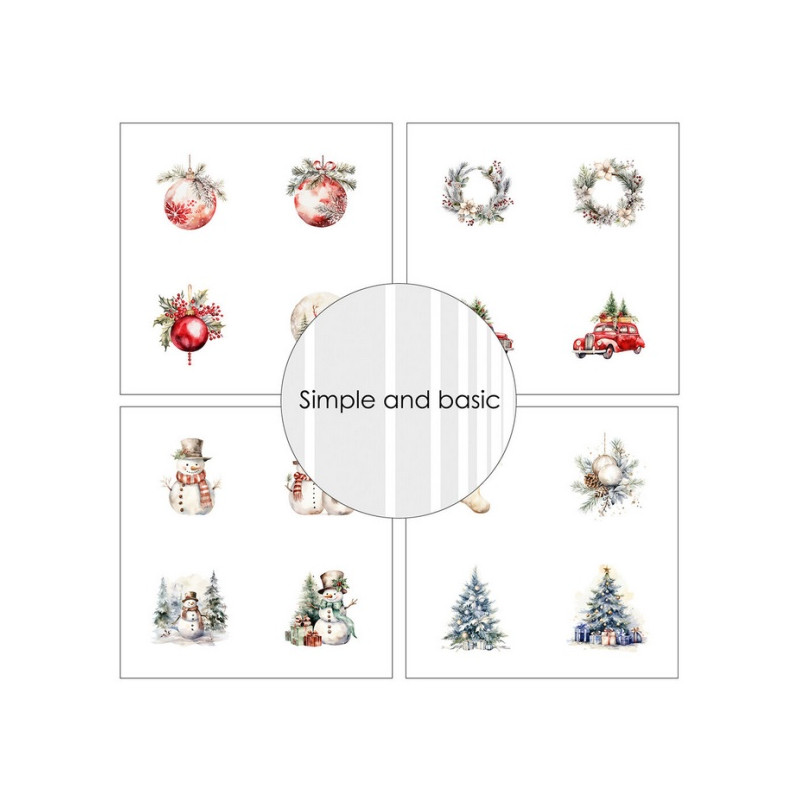 Sada papírů o rozměru 15x15cm. Obsahuje 24 různě vzorovaných jednostranně potištěných listů. V sadě je 8 vzorů, každý po třech kusech. Gramáž papíru 200g/m2. Acid&lignin free. Nevhodné pro děti do 3 let.