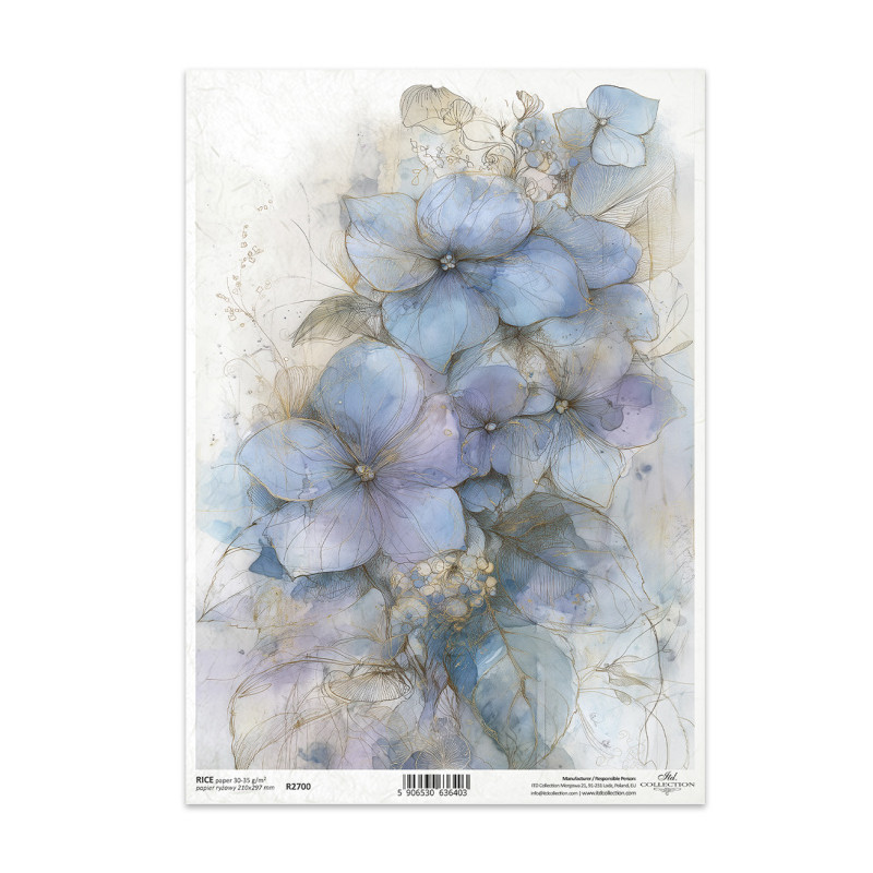 Přírodní rýžový papír pro decoupage. Výrobek ITD Collection. Snadné lepení, vhodné na dřevo, lepenku, kov, sklo. Nevyžaduje před použitím namáčení. Rozměr A4.