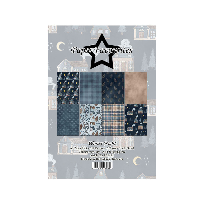 Sada papírů o rozměru A5. Obsahuje 24 různě vzorkovaných listů. V sadě je 8 vzorů, každý po třech kusech. Neobsahuje kyselinu ani lignin. Gramáž papíru 200g/m². Nevhodné pro děti do 3 let.