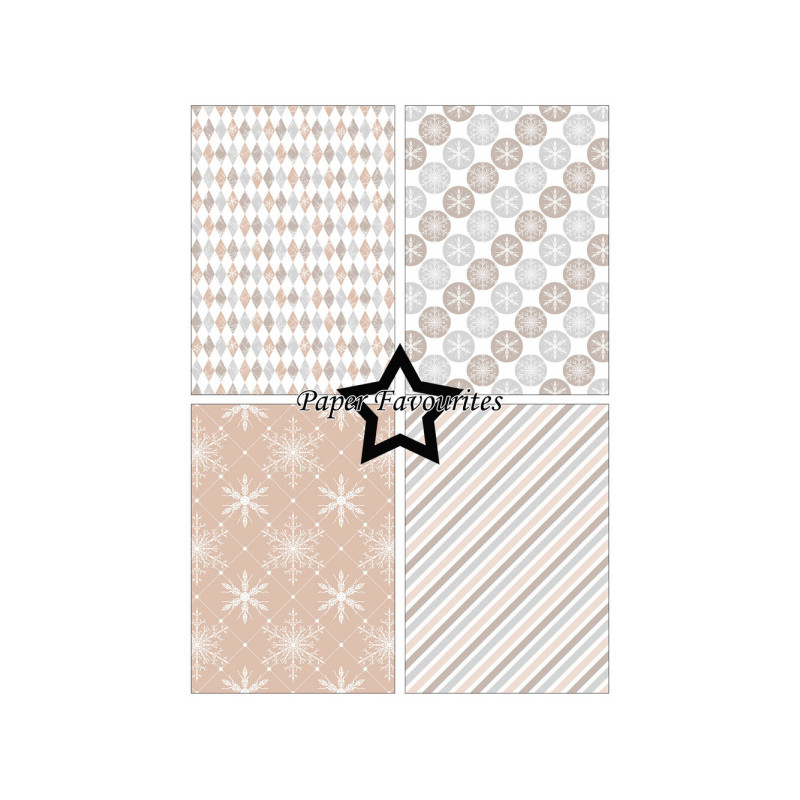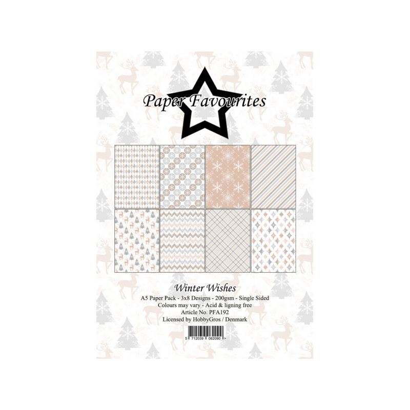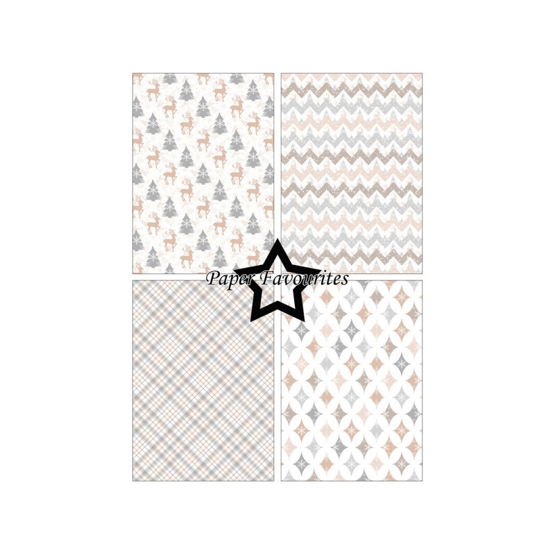 Sada papírů o rozměru A5. Obsahuje 24 různě vzorkovaných listů. V sadě je 8 vzorů, každý po třech kusech. Neobsahuje kyselinu ani lignin. Gramáž papíru 200g/m². Nevhodné pro děti do 3 let.
