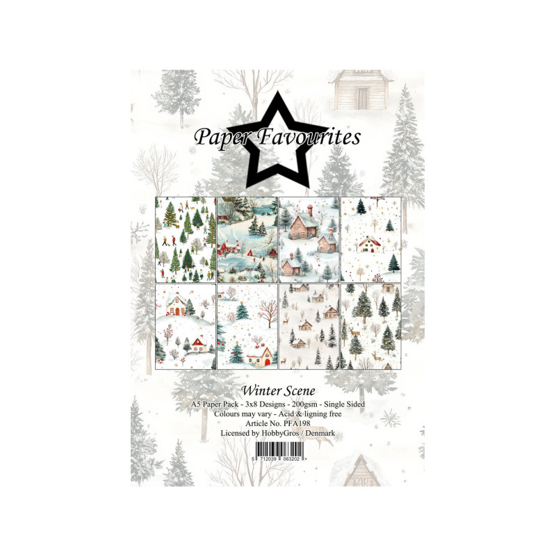 Sada papírů o rozměru A5. Obsahuje 24 různě vzorkovaných listů. V sadě je 8 vzorů, každý po třech kusech. Neobsahuje kyselinu ani lignin. Gramáž papíru 200g/m². Nevhodné pro děti do 3 let.