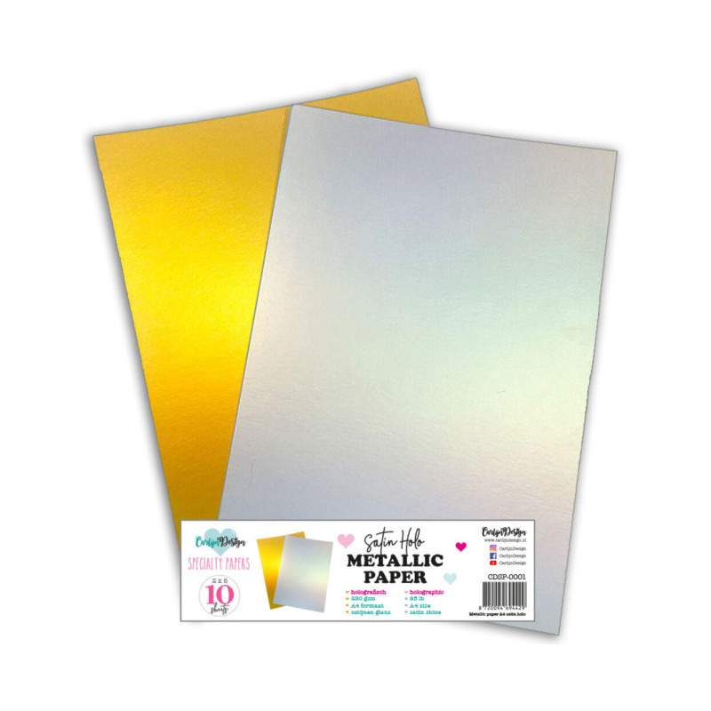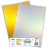 Sada 10ks metalických papírů s jemným holografickým zrcadlením. V sadě 5 listů ve stříbrné a 5 ve zlaté barvě. Vhodných pro scrapbooking a výrobu dekorací. Velikost A4. 230gsm. Nevhodné pro děti do tří let.