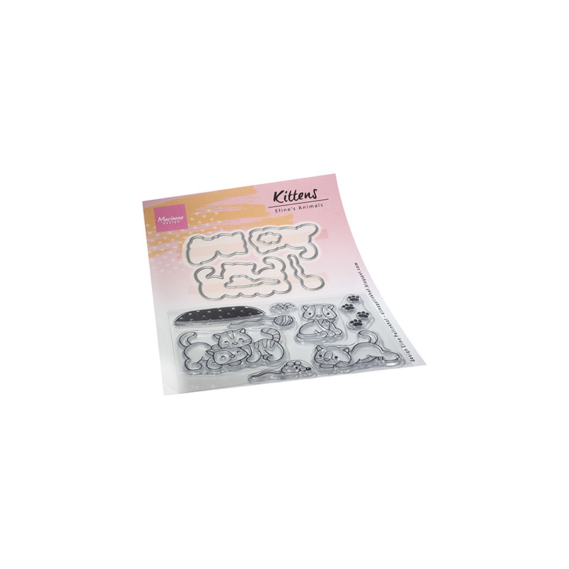 Set kovových vyřezávacích šablon a razítek. Šablony jsou vhodné pro Big shot, použitelné pro většinu vyřezávacích a embos. strojků. Při používání se řiďte návodem výrobce přístroje. Vhodné pro papír do 220g/m2. Šablona vyřízne obrys razítka. 6ks vyřezávacích šablon, 8 razítek. Velikost např. vyříznutého motivu dvou koťátek cca 6,4x4cm. Nevhodné pro děti do 12 let.