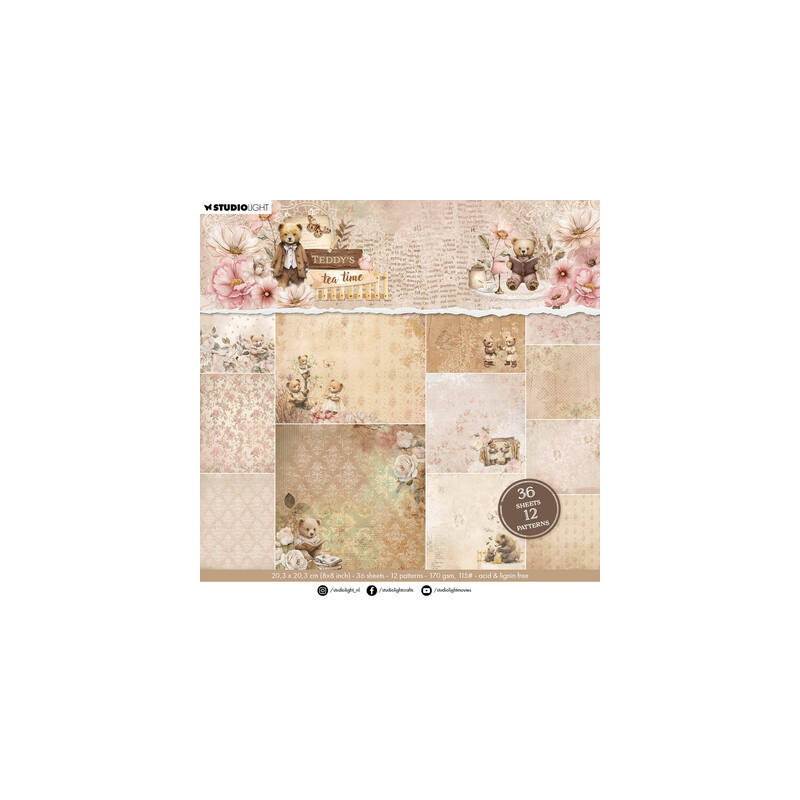 Sada papírů o rozměru 20,3x20,3cm. 36 listů. V sadě je 12 vzorů, gramáž 170gsm. Acid and lignin free. Nevhodné pro děti do 3 let.