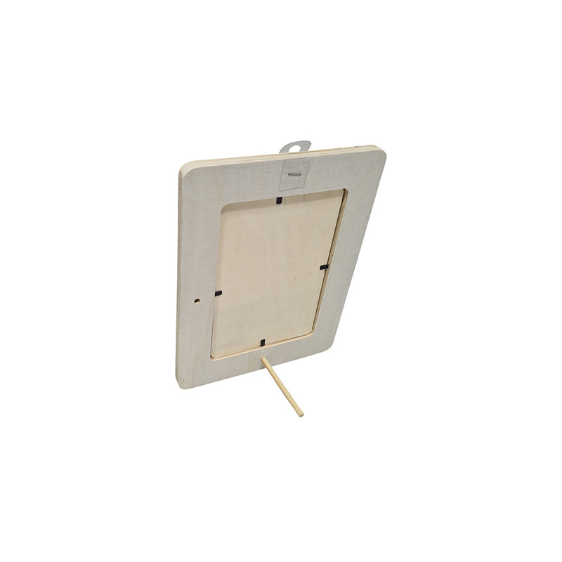 Rámeček ze dřevěné překližky – polotovar určený k dekorování ubrouskovou technikou apod. Rozměr celého rámečku cca 16,3x21,5cm, rozměr vnitřního okénka cca 9,6x14,7cm. Tloušťka rámečku 1cm. Zadní strana je oddělávací a má otvor k umístění kolíčku na postavení. Nevhodné pro děti do tří let.