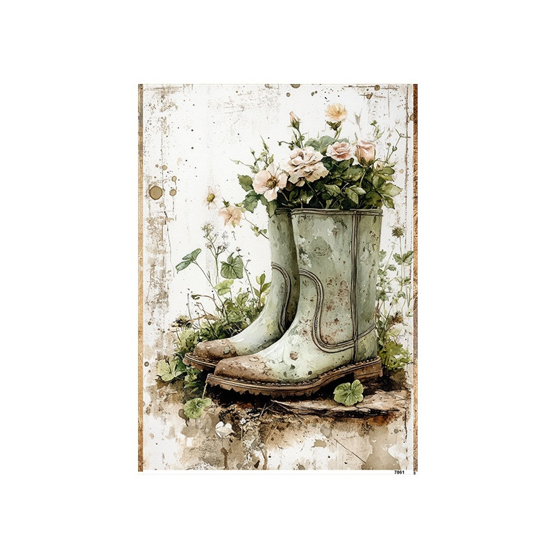Přírodní rýžový, velmi jemný papír pro decoupage ve formátu A5. Velikost motivu cca 19,5x13,8cm. Gramáž 25-35gsm. Snadné lepení, vhodné na dřevo, lepenku, kov, sklo. Nevyžaduje před použitím namáčení. Nevhodné pro děti do tří let.