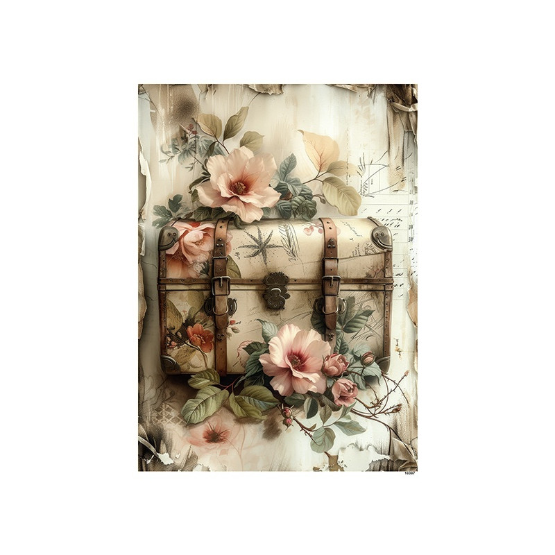 Přírodní rýžový, velmi jemný papír pro decoupage ve formátu A5. Velikost motivu cca 19,5x13,8cm. Gramáž 25-35gsm. Snadné lepení, vhodné na dřevo, lepenku, kov, sklo. Nevyžaduje před použitím namáčení. Nevhodné pro děti do tří let.