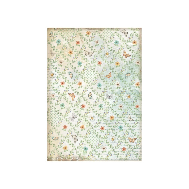 Přírodní rýžový, velmi jemný papír pro decoupage ve formátu A4. Výrobek italské firmy Stamperia. Snadné lepení, vhodné na dřevo, lepenku, kov, sklo. Nevyžaduje před použitím namáčení. Nevhodné pro děti do tří let.
