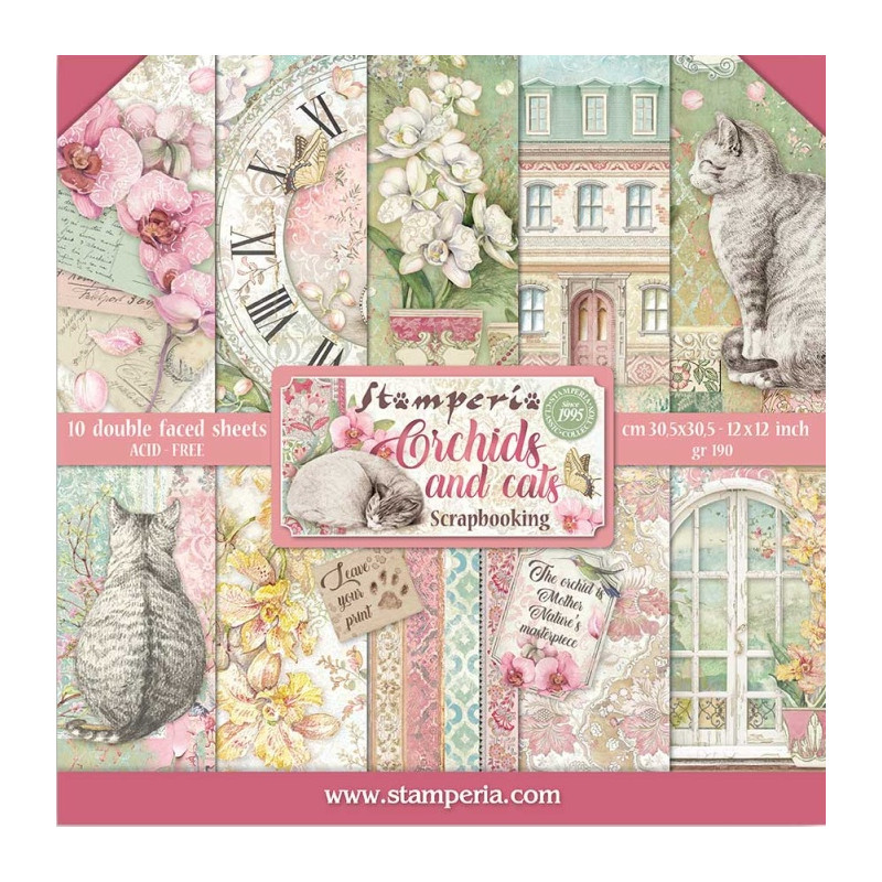 Sada papírů zn. Stamperia o rozměru 30,5x30,5cm. Obsahuje 10ks oboustranně potištěných listů, každý s jiným motivem. Gramáž papírů 190g/m2, acid free. Nevhodné pro děti do 3 let.