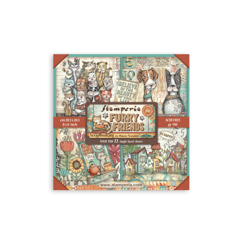 Sada papírů zn. Stamperia o rozměru 20,3x20,3cm. Obsahuje 22ks jednostranně potištěných listů, každý s jiným motivem. Gramáž papírů 190g/m2, acid free. Nevhodné pro děti do 3 let.