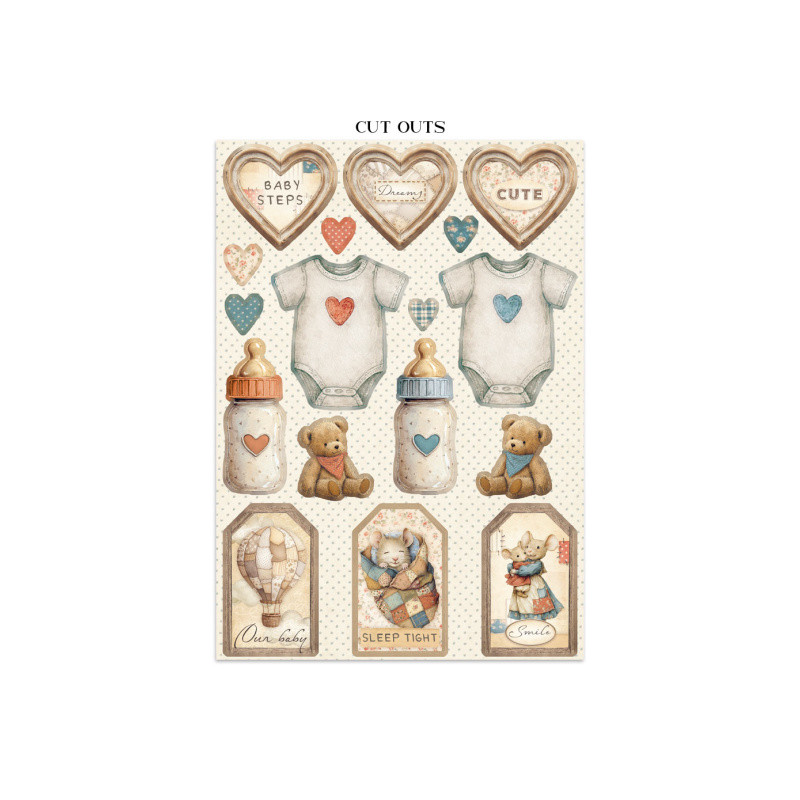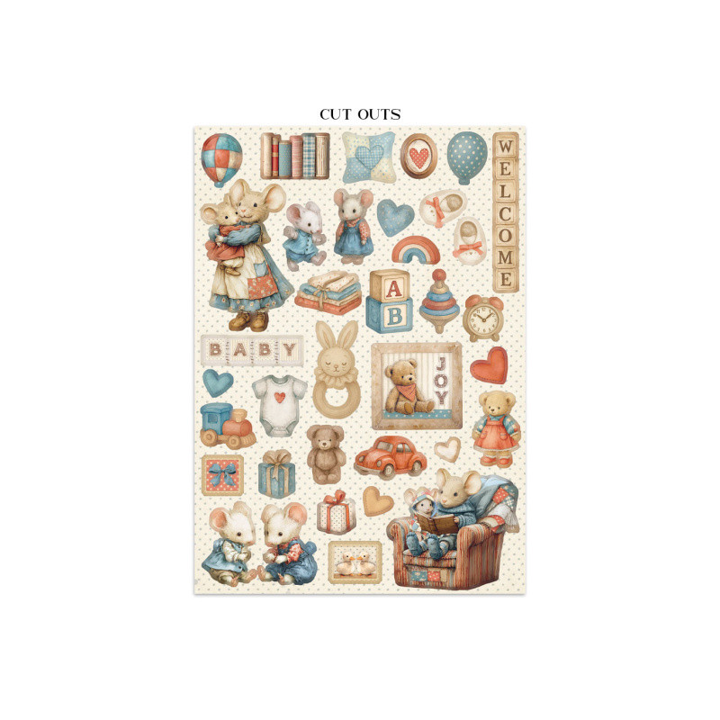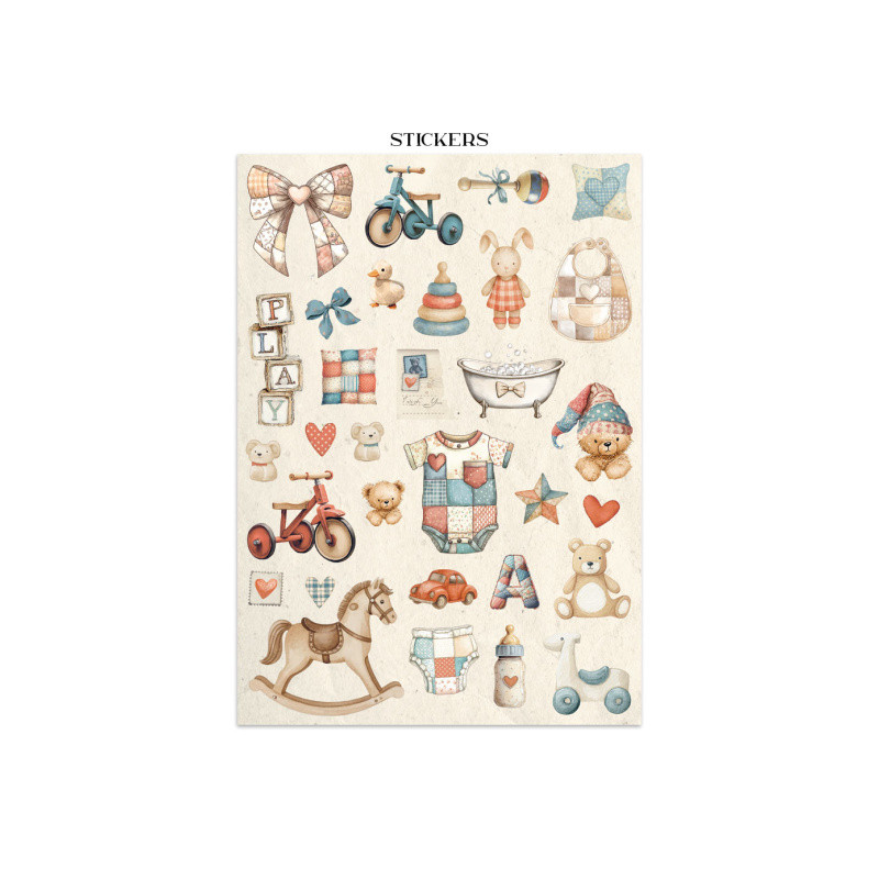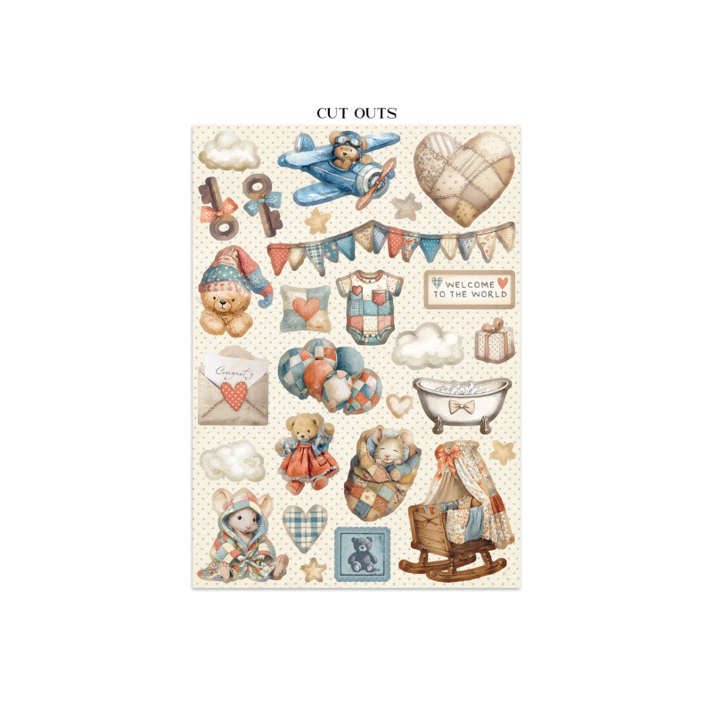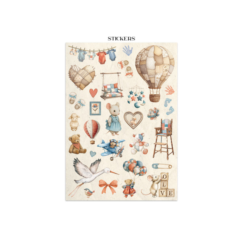Kreativní kniha o velikosti A4 s obrázky pozadí, samolepkami, předvyřezanými motivy a motivy k vystřižení. Celkem 16 stran pro tvorbu přáníček, alb, zápisníků a dekorací. 8 stran oboustranný karton 220g/m2, 4 strany samolepek 120g/m2, 4 strany oboustranných výřezů 220g/m2. Bez kyselin. Nevhodné pro děti do 3 let.