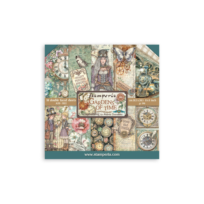 Sada papírů zn. Stamperia o rozměru 20,3x20,3cm. Obsahuje 10ks oboustranně potištěných listů, každý s jiným motivem. Gramáž papírů 190g/m2, acid free. Nevhodné pro děti do 3 let.
