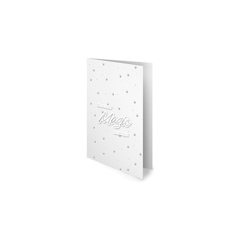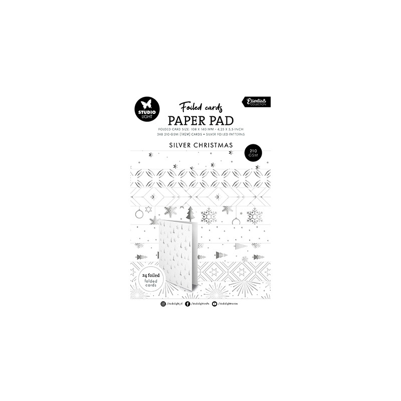 Sada papírů – základů pro výrobu vánočních přáníček. Obsahuje 24 listů v osmi designech. Fóliový tisk s metalickým leskem působí velmi luxusně. Každý papír je v polovině narýhován, stačí ho ze sady vytrhnou a složit. Získáte přáníčko o velikosti A6. Gramáž papíru 210g/m2. Výrobek značky Studio Light. Nevhodné pro děti do 3 let.