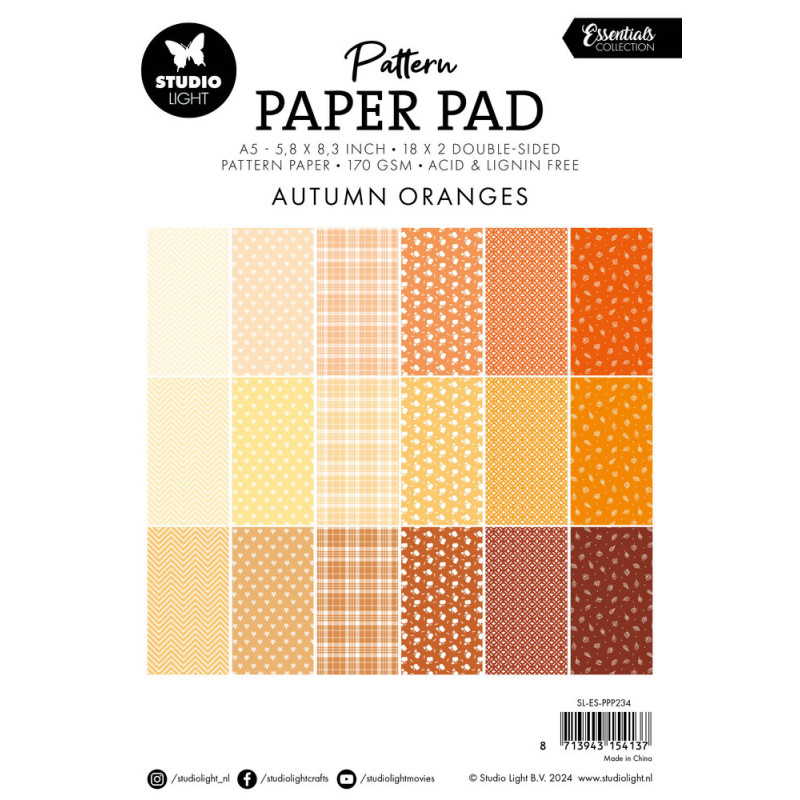 Sada papírů s vánoční potiskem o rozměru 14,8x21cm. Obsahuje 36 listů. V sadě je 18 barev, každá po dvou kusech. Neobsahuje kyselinu. Oboustranně barevný. Gramáž papíru 170g/m2. Výrobek značky Studio Light. Nevhodné pro děti do 3 let.