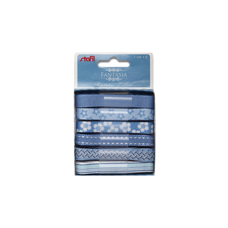 Sada šesti druhů dekoračních stuh ve stejném barevném tónu. Délka jednotlivých stuh je 1m. Jsou vhodné jak pro zdobení přáníček, alb a scrapbookových stránek, tak i pro olemování polštářků, taštiček anebo převázání dárku. Nevhodné pro děti do tří let.