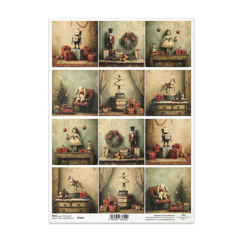 Přírodní rýžový papír pro decoupage. Výrobek ITD Collection. Snadné lepení, vhodné na dřevo, lepenku, kov, sklo. Nevyžaduje před použitím namáčení. Rozměr A4.