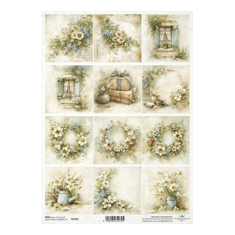 Přírodní rýžový papír pro decoupage. Výrobek ITD Collection. Snadné lepení, vhodné na dřevo, lepenku, kov, sklo. Nevyžaduje před použitím namáčení. Rozměr A4.