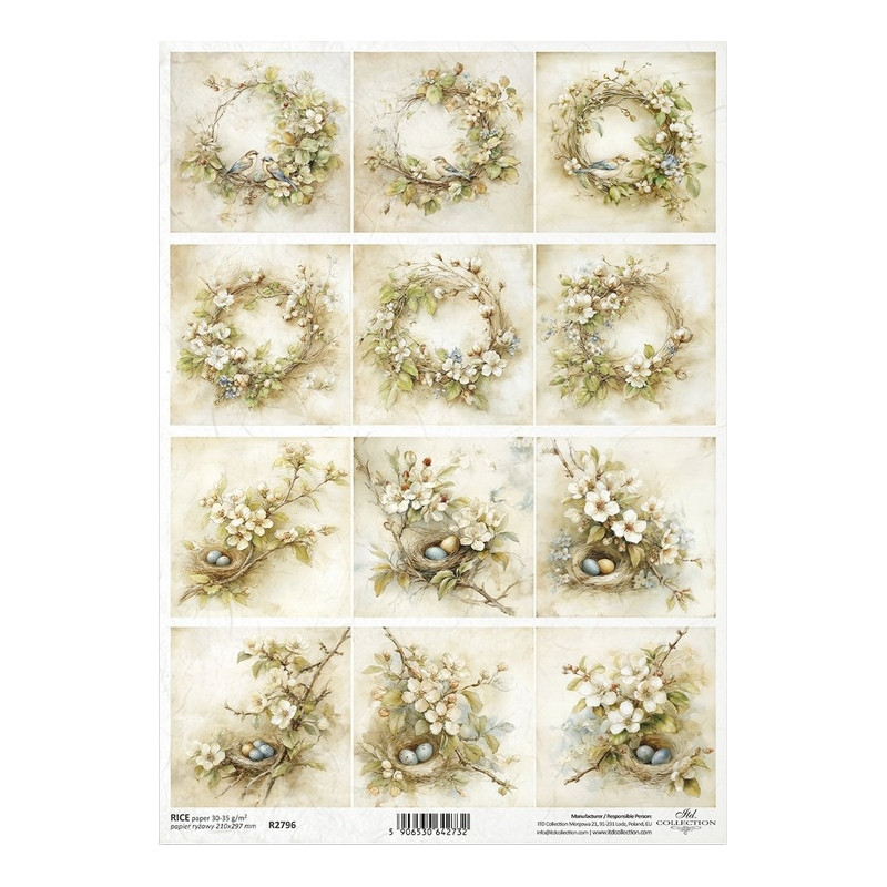 Přírodní rýžový papír pro decoupage. Výrobek ITD Collection. Snadné lepení, vhodné na dřevo, lepenku, kov, sklo. Nevyžaduje před použitím namáčení. Rozměr A4.