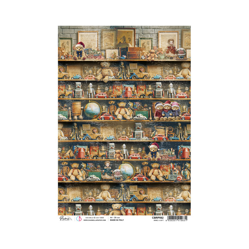 Přírodní rýžový, velmi jemný papír pro decoupage ve formátu A4. Výrobek italské firmy CIAO BELLA. Snadné lepení, vhodné na dřevo, lepenku, kov, sklo. Nevyžaduje před použitím namáčení. Nevhodné pro děti do tří let.