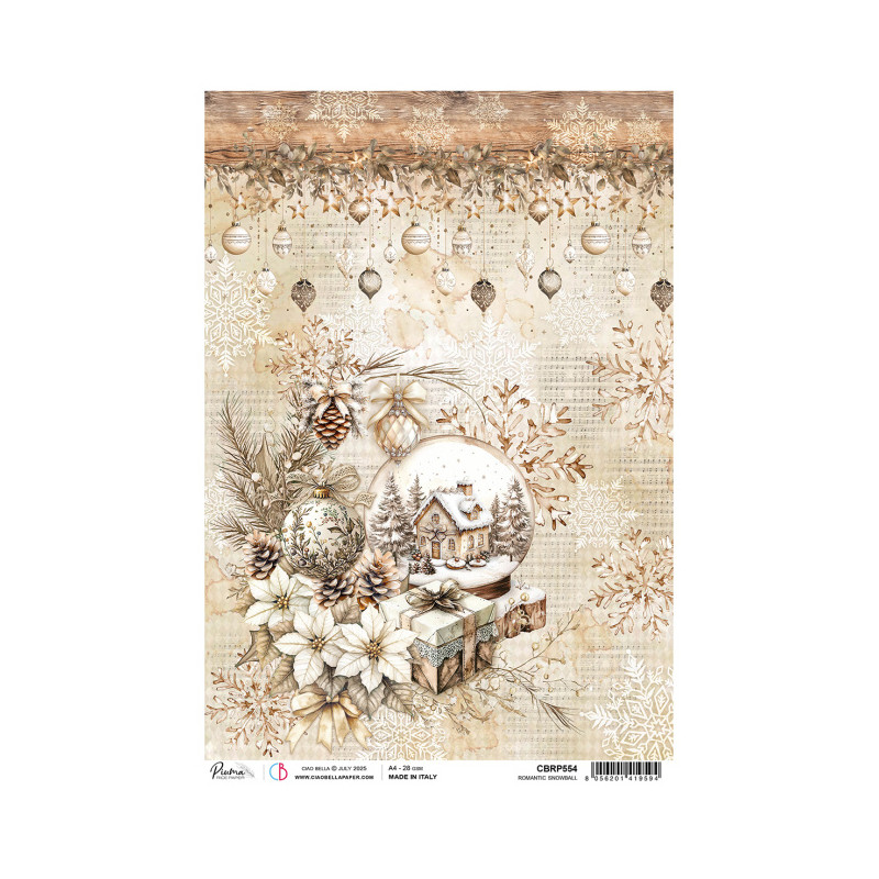 Přírodní rýžový, velmi jemný papír pro decoupage ve formátu A4. Výrobek italské firmy CIAO BELLA. Snadné lepení, vhodné na dřevo, lepenku, kov, sklo. Nevyžaduje před použitím namáčení. Nevhodné pro děti do tří let.
