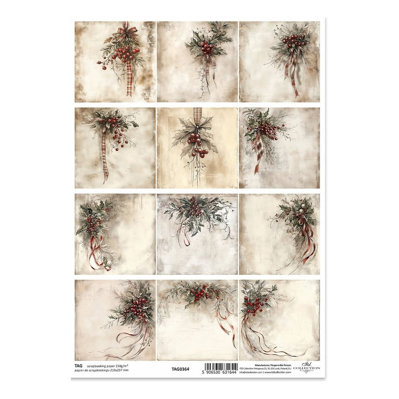 List A4 papíru o gramáži 250g/m2 s kvalitním potiskem. Vhodné především pro cardmaking, scrapbooking a další tvořivé techniky. Vyrobeno ze 100% recyklovaného papíru, bez chloru. Tip: Stejné motivy najdete i mezi rýžovými papíry a transférovými papíry značky ITD a můžete je společně využít pro tvorbu dárkových a dekoračních sad.