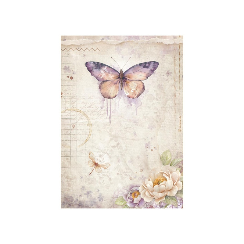 Přírodní rýžový, velmi jemný papír pro decoupage ve formátu A4. Výrobek italské firmy Stamperia. Snadné lepení, vhodné na dřevo, lepenku, kov, sklo. Nevyžaduje před použitím namáčení. Nevhodné pro děti do tří let.