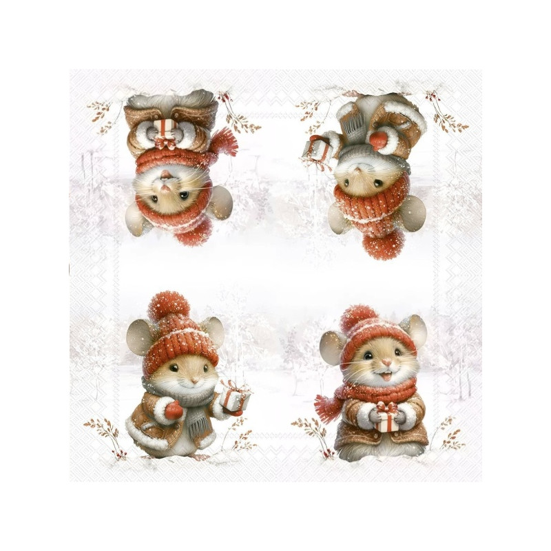 Ubrousek trojvrstvý s motivem. Zobrazení 1/4 ubrousku. Na druhé fotografii zobrazení celého ubrousku. Rozměr 33x33cm.